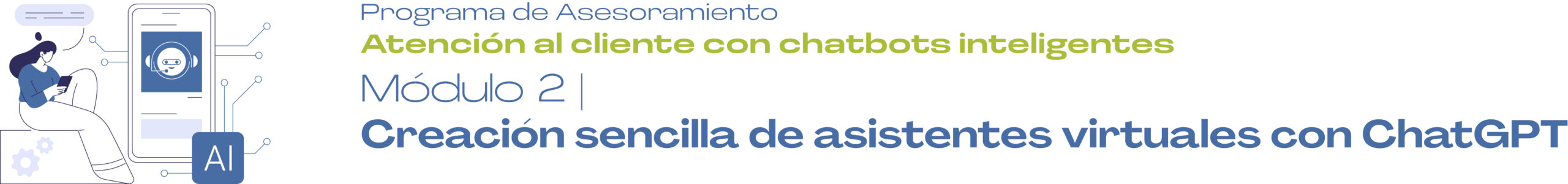 Inicio 5 Programa de Asesoramiento 8 5 Módulo 2: Creación sencilla de asistentes virtuales con ChatGPT Volver atrás Módulo 2 Recursos del Módulo Contenido teórico Acceder Podcast Acceder Ejercicio práctico Acceder Lecturas complementarias PEl futuro de los chatbots en la atención al cliente: ¿Están reemplazando a los humanos? P¿Cómo crear un chatbot con IA e integrarlo en WhatsApp? PLa guía definitiva de los chatbots PNL en 2025 Vídeos complementarios P¡Las Nuevas Funciones de ChatGPT Son una LOCURA! PConversaciones con Inteligencia Artificial – ChatBots PCómo CREAR TU PROPIO Chatbot con ChatGPT desde cero